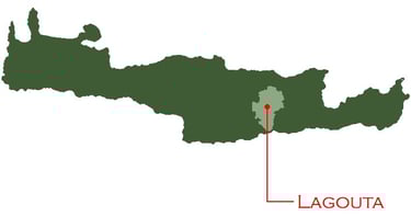 In Lagouta, einem kleinen traditionellen Dorf in der Gemeinde Minoa Pediada in der Region Heraklion, gedeihen unsere Olivenbäume zwischen den minoischen Bergen, aus denen unser Öl gewonnen wird. Die Olivenbäume des Dorfes sammeln die Säfte und Aromen der kretischen Erde und wachsen Tag für Tag unter dem reichlichen Sonnenlicht in Höhen von 250 bis 500 Metern.